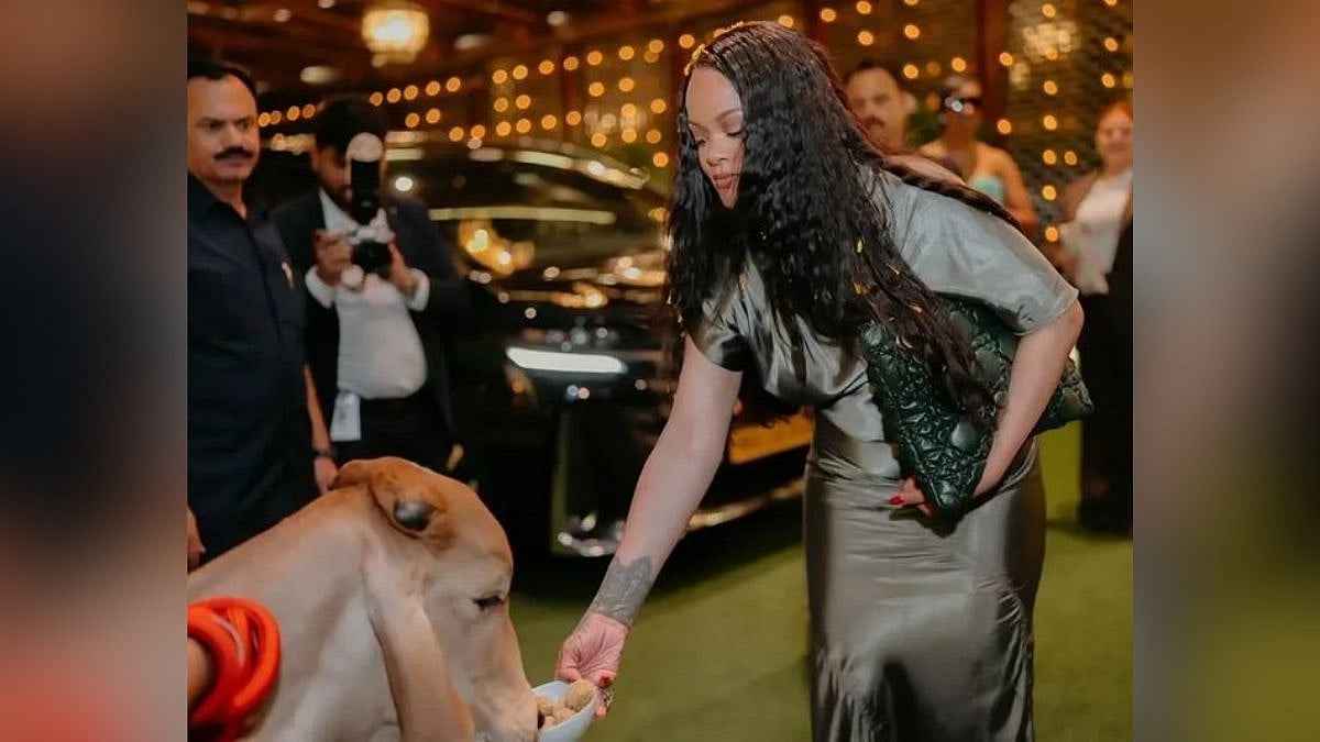A picture of Rihanna feeding a cow surfaced during her visit to businessman Mukesh Ambani’s residence, Antilia. While the image appears wholesome, it has landed the pop star in controversy. The row erupted after netizens noticed that she was feeding the cow while carrying a luxury Dior handbag featuring animal leather embellishments. The bag, reportedly worth Rs 4.3 lakh, includes lining made from calfskin and lambskin.