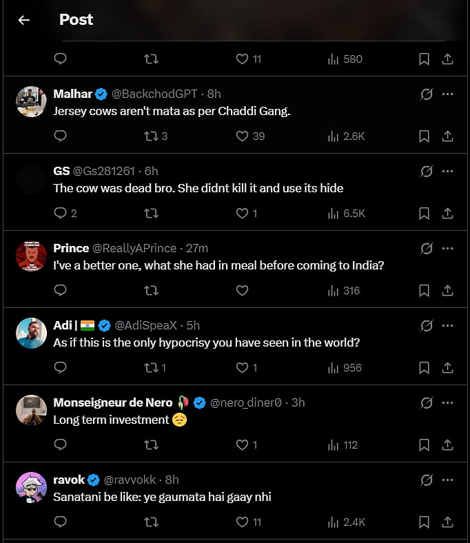 A user named “Absolute” came to Rihanna’s defence, writing, “The cow needs to be fed so it can reproduce for more cowhides. It’s a cycle, my dear.” Meanwhile, another user, “Prince,” raised a pointed question: “I’ve a better one - what did she have for her meal before coming to India?”