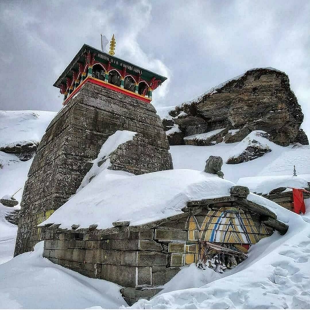 Tungnath Temple is dedicated to Lord Shiva, and it is believed to be over 1,000 years old. The temple is situated in the Garhwal Himalayas of Uttarakhand. It is also the third of the Panch Kedar temples. Tungnath is at the top of the ridge dividing the waters of the Mandakini River (rising from Kedarnath) from those of the Alaknanda River (rising above Badrinath). The peak on this ridge is the source of three springs, which form the Akashkamini River. Kedarnath, Chaukhamba, Neelkanth, and Nanda Devi could be witnessed from the top of Chandrashilla peak.