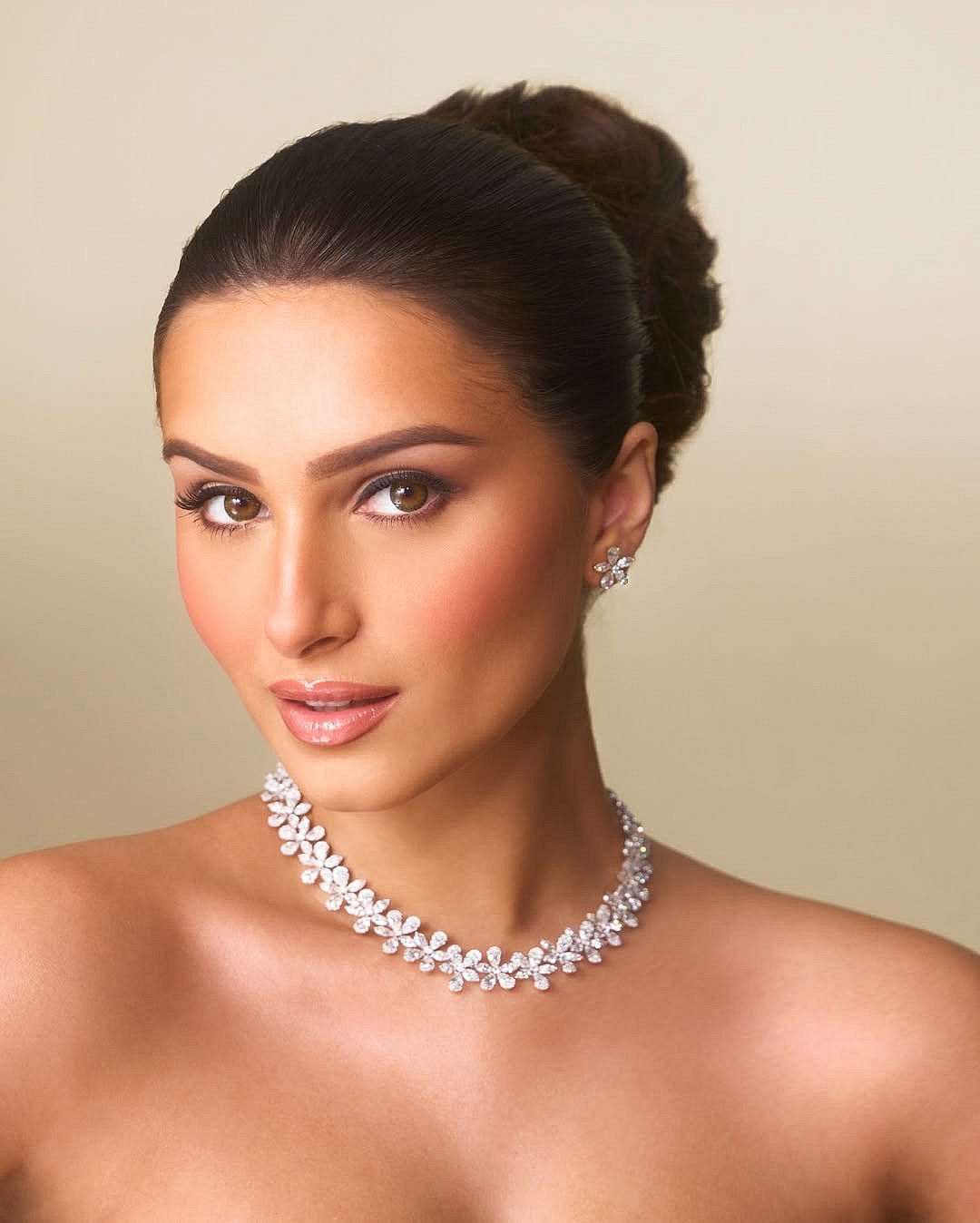 Tara kept the styling clean and minimal with a stunning diamond necklace, matching earrings and shiny bag, pieces that added just enough sparkle without overshadowing the gown.