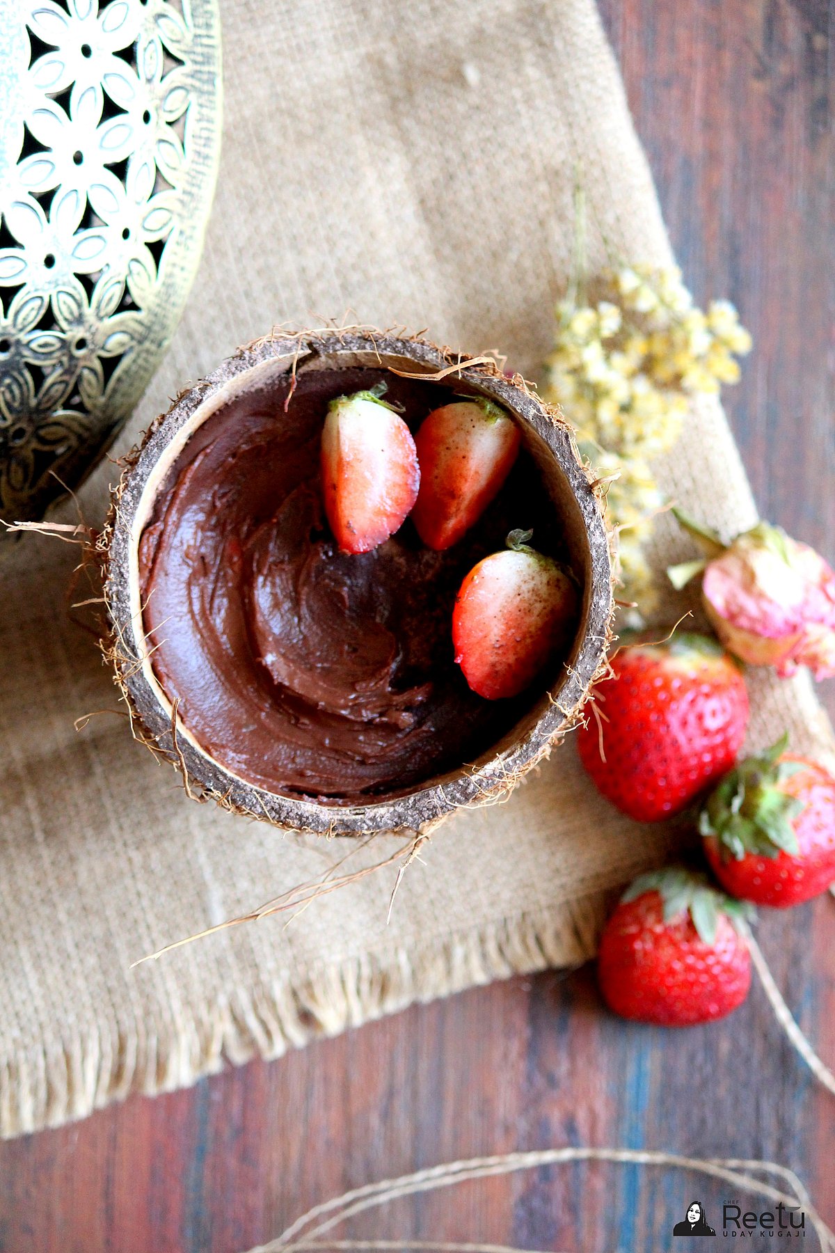 (Chef Tips: You may refrigerate the mousse overnight to get maximum flavors. You may garnish it with lightly toasted almonds, dairy free dark chocolate shavings, sprinkle a little cocoa powder or fresh berries.)