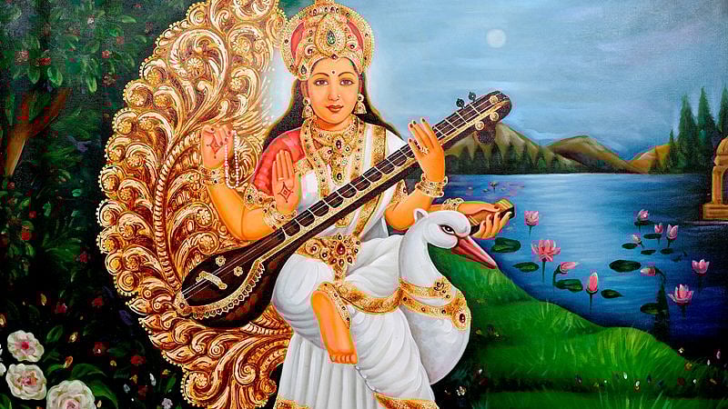 Vasant Panchami is dedicated to Goddess Saraswati because the festival marks the birth of Goddess Saraswati. In the Rigveda (one of the four Hindu Vedas), Goddess Saraswati is described as the embodiment of wisdom and knowledge. She holds the Veena (a musical instrument), a book, and a lotus flower in her hand. It is believed that when the Goddess of wisdom and music plays the veena, human beings receive the ability to speak.