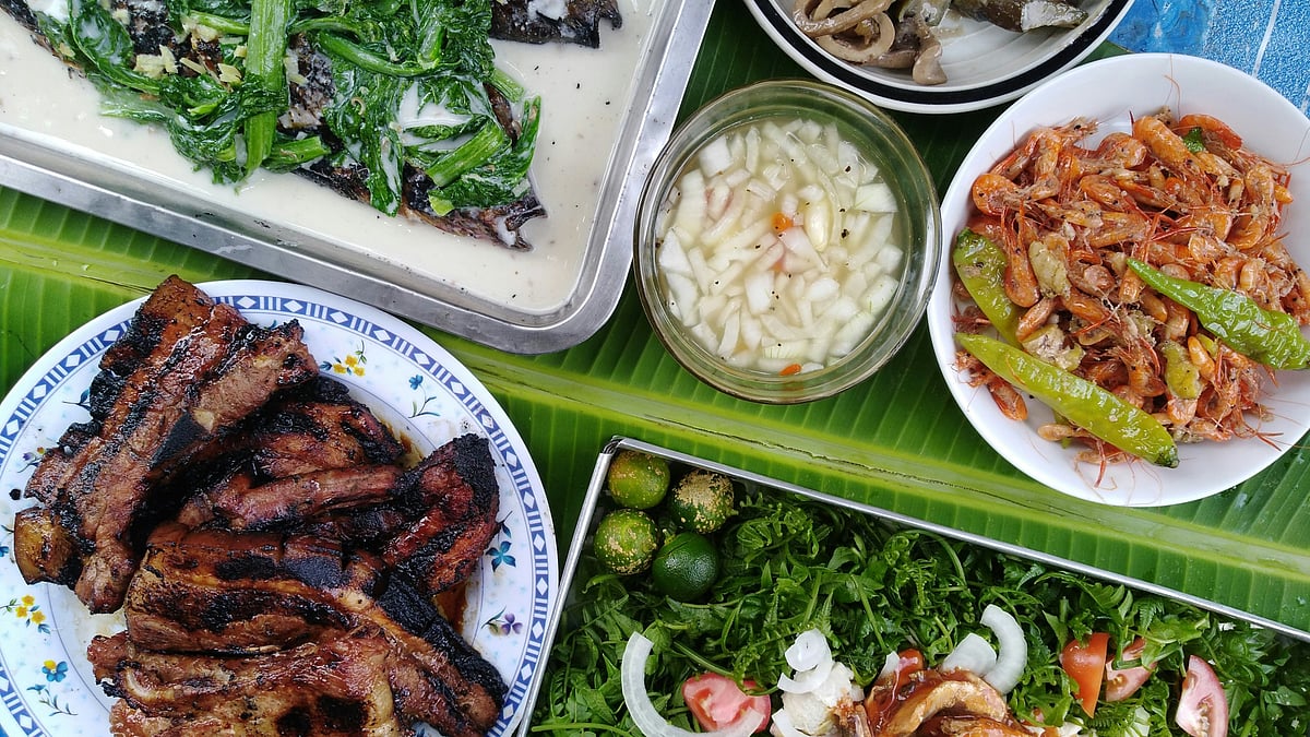 Take kare-kare, for instance. This hearty stew arrived at my table in Pampanga in a bubbling clay pot, thick with a creamy peanut sauce that clung to generous hunks of oxtail, bringal, string beans, and banana blossom. It came with a side of bagoong—a fiercely salty fermented shrimp paste that somehow brought it all together. The double “kare” sounded whimsical, but the flavour was deeply comforting and earthy. No heat, no fireworks—just a gentle richness that felt like a warm hug.