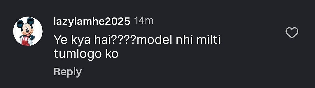 Comments quickly flooded in, with one user writing, “Ye kya hai????model nhi milti tumlogo ko.” Another bluntly stated, “No she can't walk.”