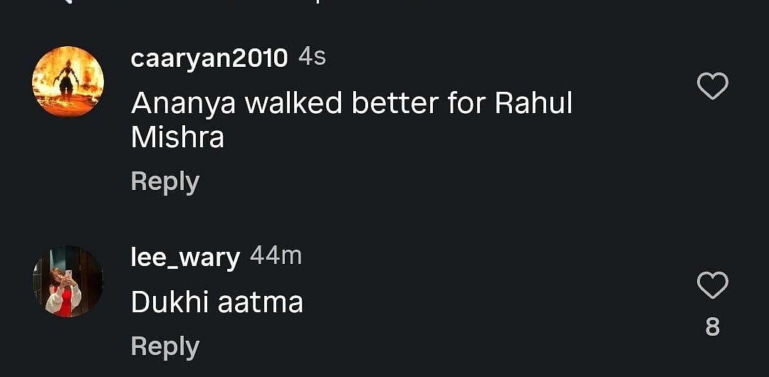 Some even drew comparisons with fellow actor Ananya Panday, with a comment reading, “Ananya Did better ramp walk for Rahul Mishra.”