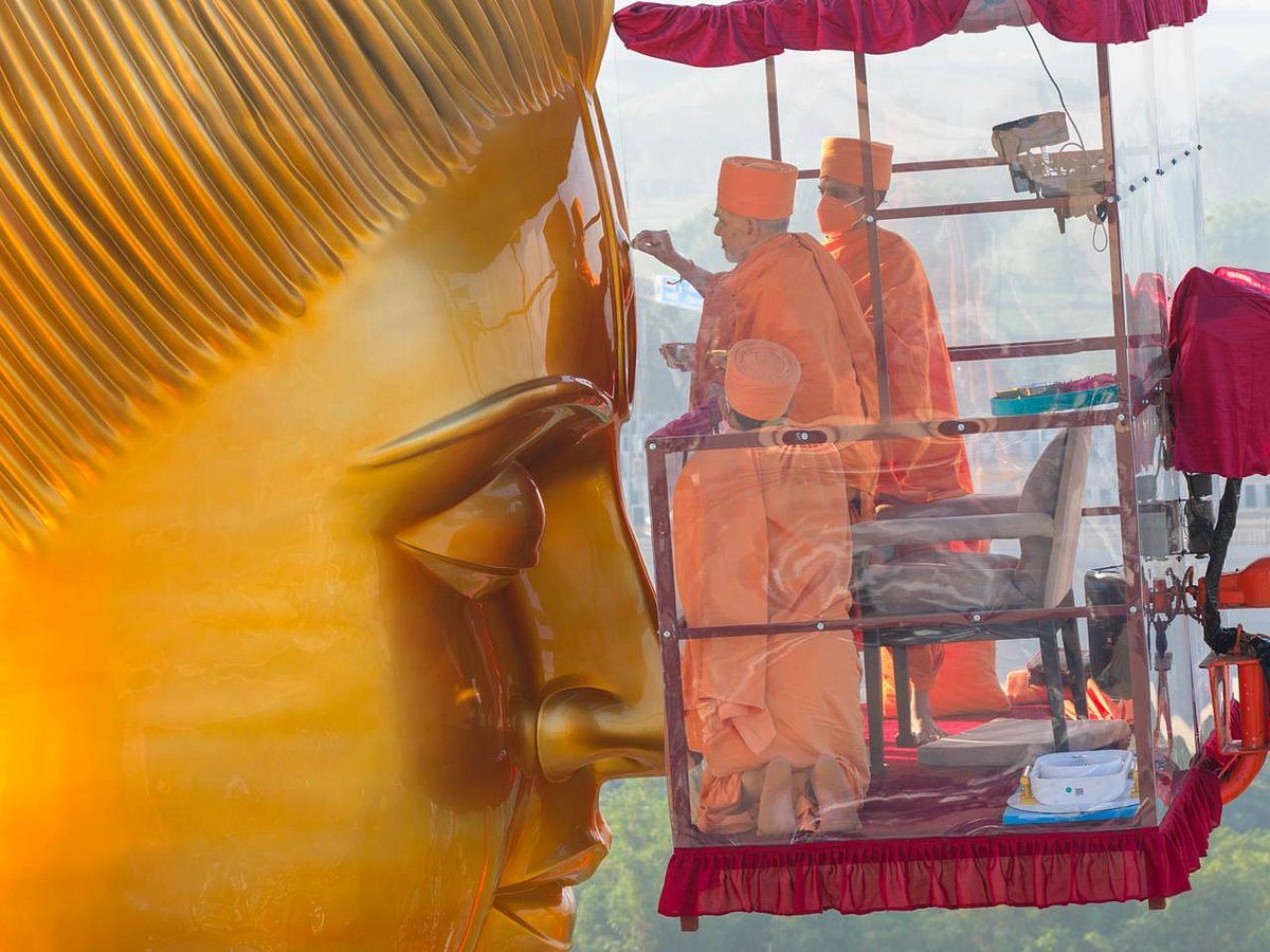 The two-day Mahotsav began on March 25 with a global peace yagna attended by thousands. The following day, the main consecration ceremony featured the ceremonial application of a sacred tilak to the statue at a height of 108 feet, a moment that devotees described as deeply moving.