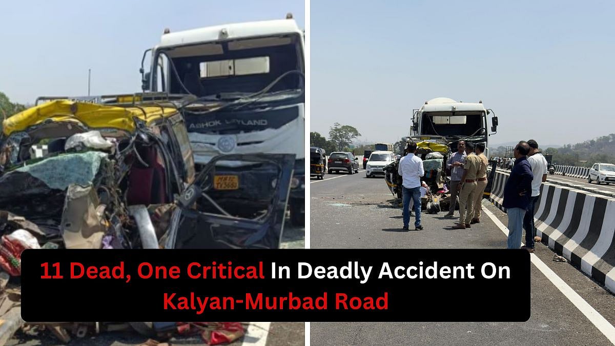Kalyan: In a devastating road accident on Monday morning, at least 11 people lost their lives while one person sustained critical injuries after a Mixer truck collided with an Eco passenger car near Rayate bridge on the Kalyan–Murbad road.