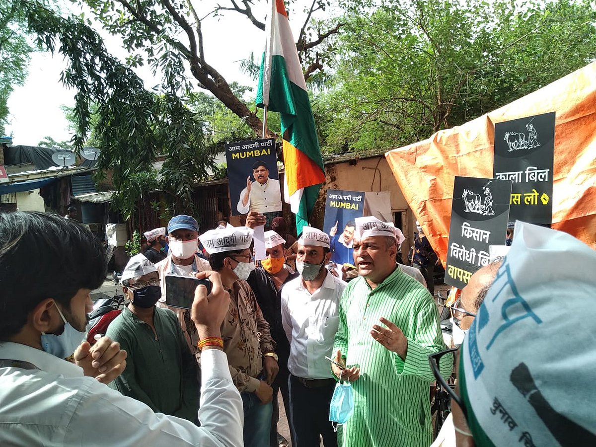 The Aam Aadmi Party's Mumbai unit today protested against the anti-farmer farm bills passed by BJP's Modi government. This was in response to a nation-wide call by the Aam Aadmi Party, to protest against the BJP's Modi led anti-farmer government.