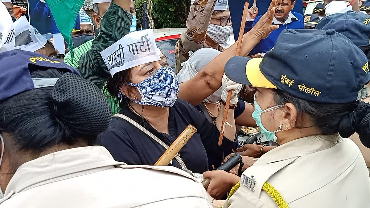 AAP senior leader Preeti Sharma-Menon, AAP State Secretary Dhananjay Shinde, with scores of other volunteers were detained by the police.
