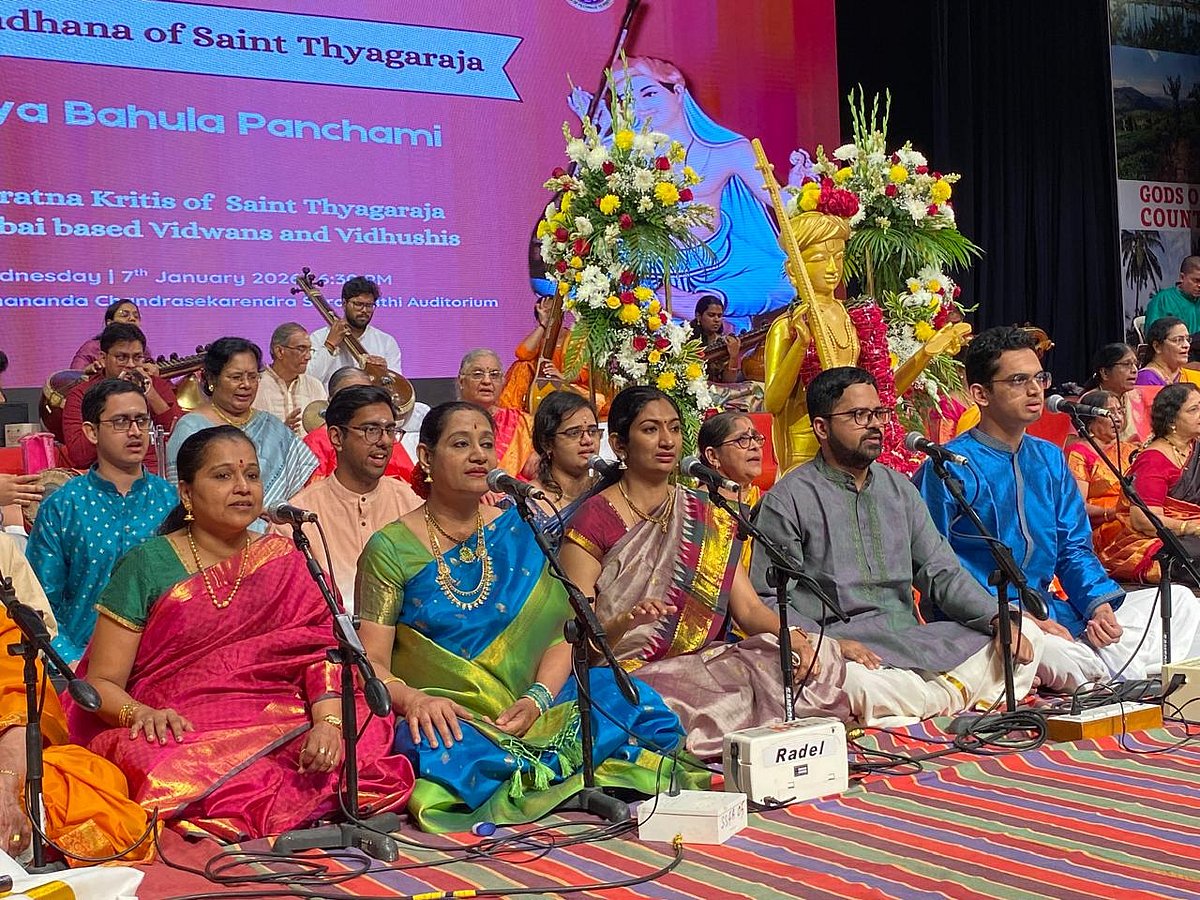 The festival featured Carnatic music performances, including the singing of Thyagaraja's Pancharatna Kritis, also called the “five gems.” These were performed in the ragas Nattai, Gowlai, Arabhi, Varali, and Sri, sung in unison by music lovers from all over Mumbai. The five songs are ‘Jagadanandakaraka’ (Nattai), ‘Dudukugala’ (Gowlai), ‘Sadhinchene’ (Arabhi), ‘Kanakanaruchira’ (Varali), and ‘Endaro Mahanubhavulu’ (Sri), all set to Adi tala. Aradhana Day marks the day when the saint attained samadhi.