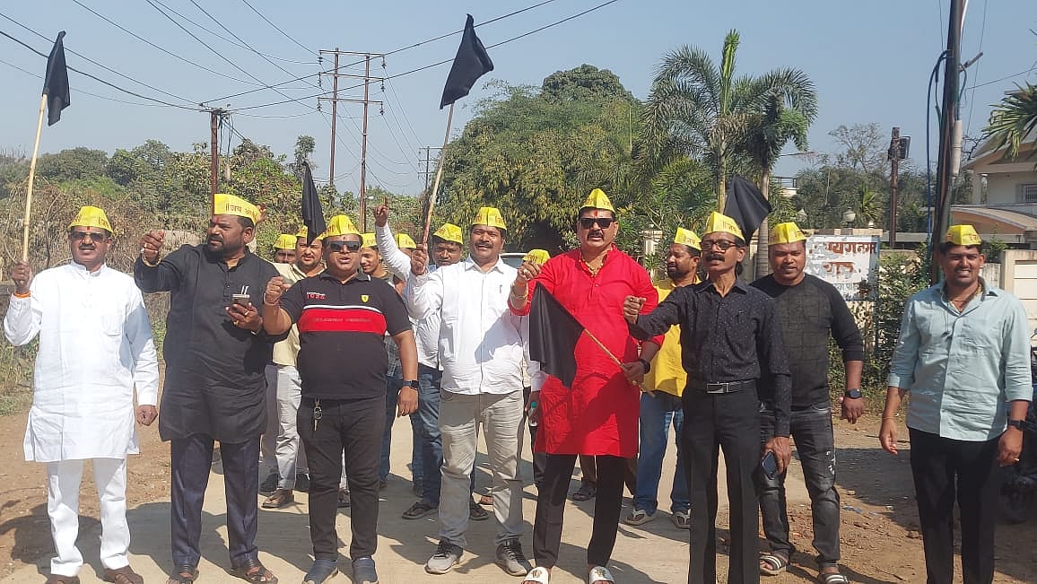 Bhiwandi: Local residents and land-owning communities from rural parts of Bhiwandi staged coordinated protest demonstrations across multiple villages on Wednesday, opposing the Centre’s decision to operationalise the Navi Mumbai International Airport without dedicating it to renowned mass leader D.B. Patil. Protesters carried black flags and raised slogans, terming the move an insult to the sacrifices made by project-affected farmers and locals.