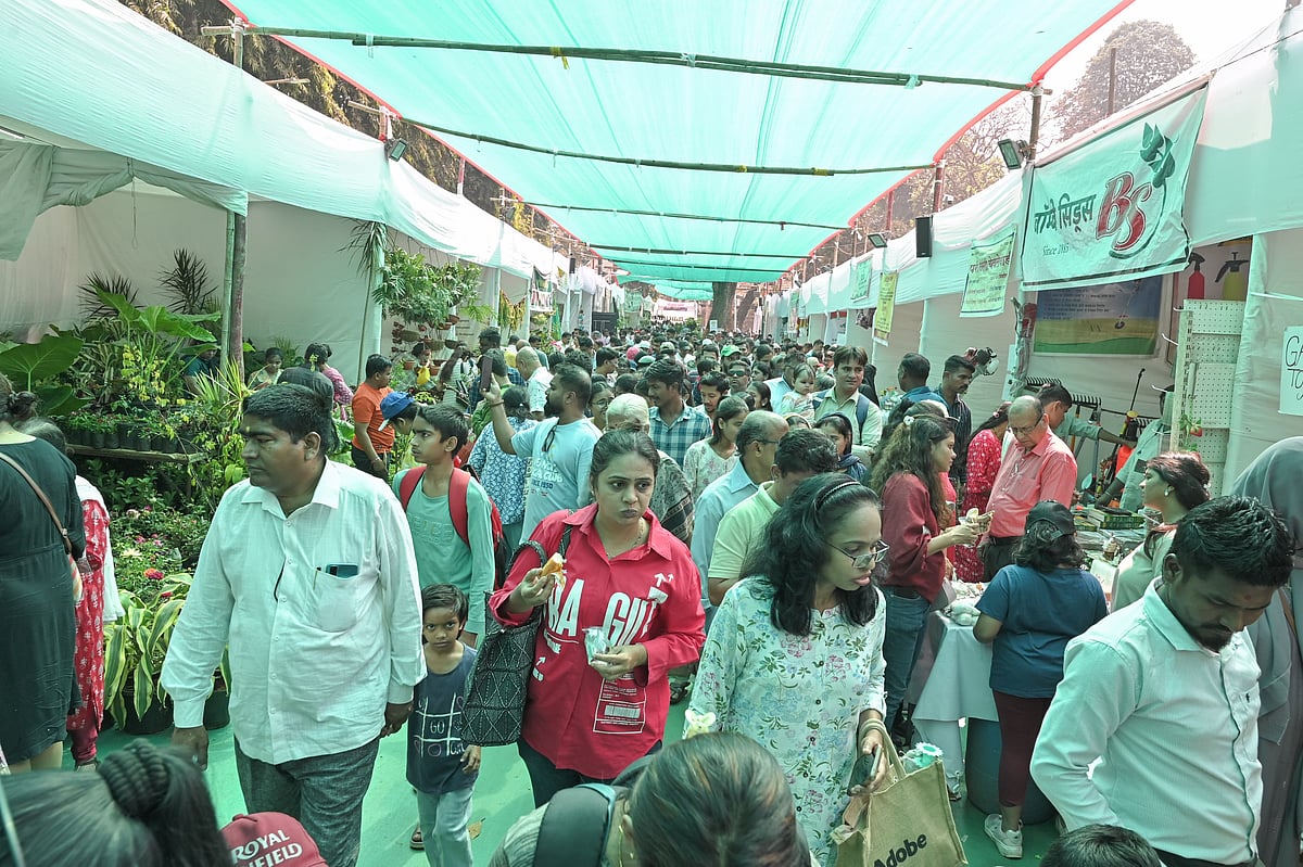 The Mumbai Flower Festival displayed various vines, spice plants, ornamental flowers and other decorations. People crowded to enjoy the array of fruits, flowers, vegetables, and also to buy fertilizers and tools for the garden.