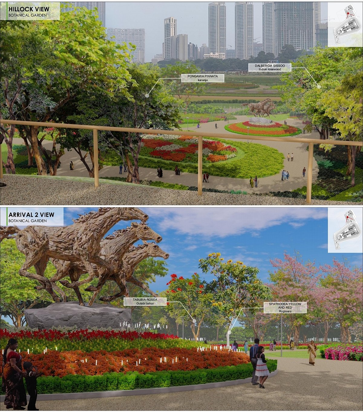 The 80-pages master plan prepared by architect Hafeez Contractor, is largely divided into three sections - Garden, Sports Arena and Convention Center. The Topiary Garden section includes an Open Air Amphitheatre, Lotus Pond, Aquatic Garden, Synchronised Musical Linear Foundations, Jogging track among others. It will also include Walkway to Poly House, Artificial Hillock, City Forest Gardens, Botanical Gardens and importantly the Coastal Gardens to Racecourse Connectivity via subway.