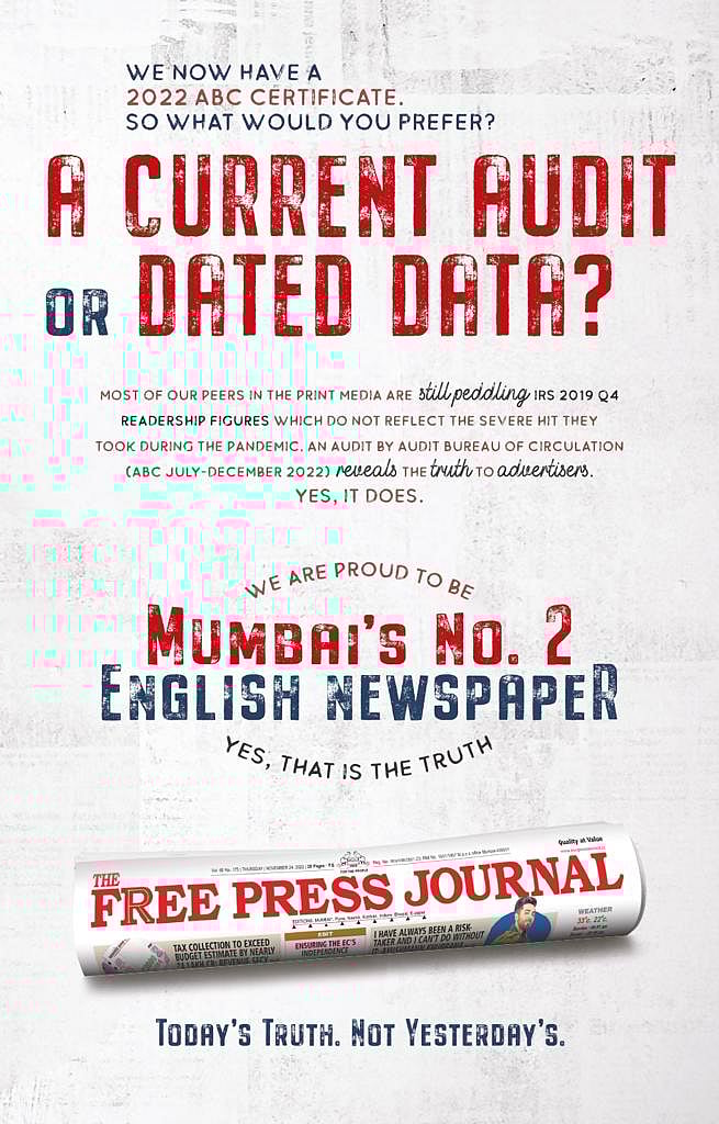 The Free Press Journal is the only English newspaper to have an Audit Bureau of Circulation (ABC July-December 2022) certificate in Mumbai. It has done so with immense conviction in order to reinforce the credibility of both its circulation and its commitment to accuracy and truth.
