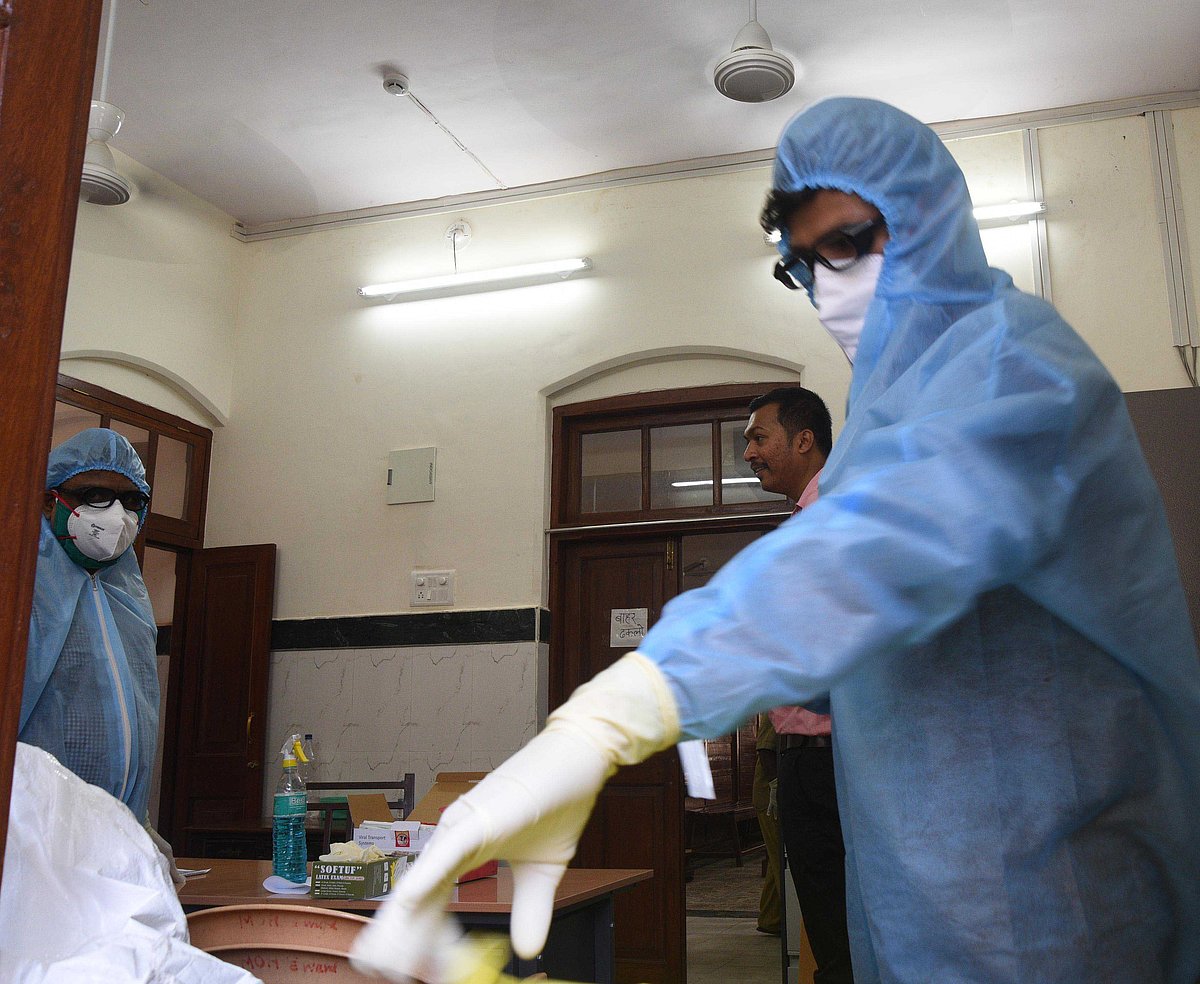 Due to the increase in the number of positive cases, hospital staff are hesitant to continue work without PPE kits. "We fear that if we work without safety gears, we will contract the virus. We are not given PPE kits and are asked to work in wards with positive patients. The body of the woman, who died last night, was kept for more than 12 hours in the ICU. Later, only one kit was given to a sweeper, who was asked to wrap her body. However, it is not confirmed that she was infected with the virus," said a staff of the hospital on the request of anonymity.