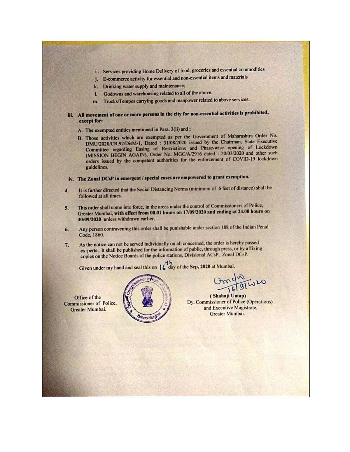 The order clearly states that the status quo will continue for all exceptions that have been mentioned the Government of Maharashtra in its August 31 order.