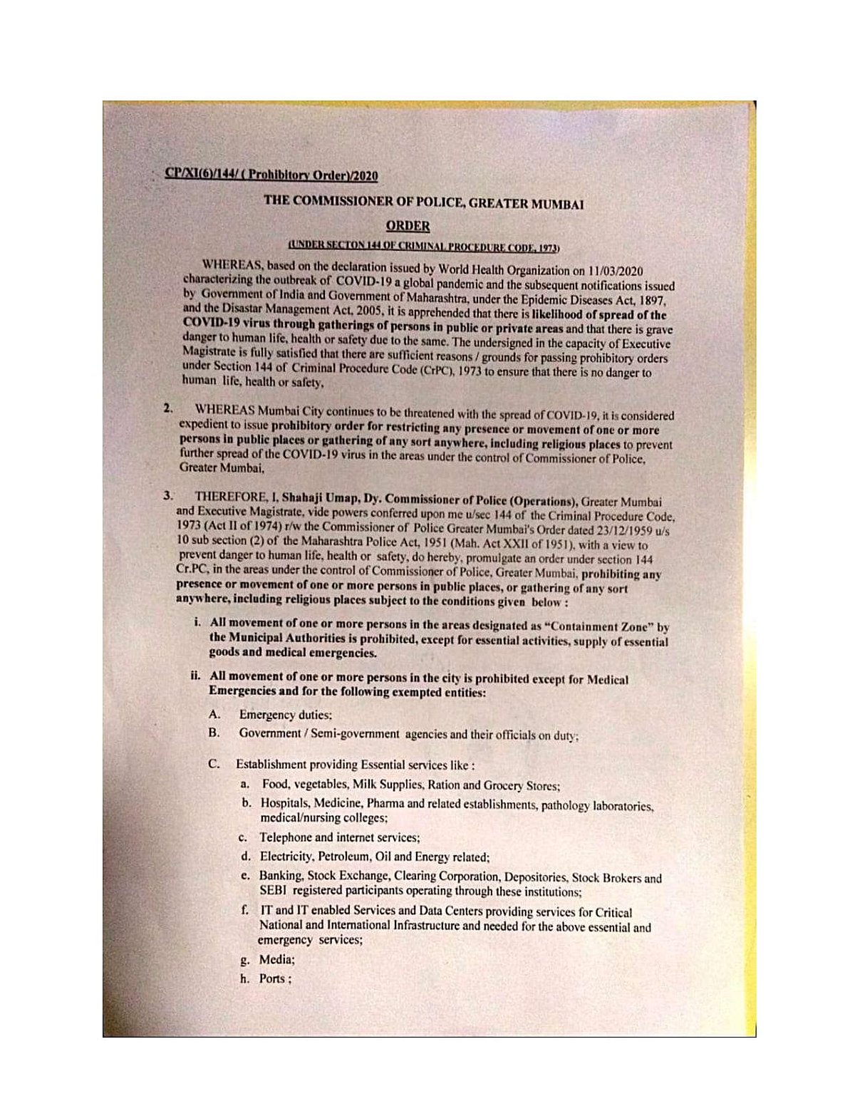 On Thursday, the Mumbai Police announced Section 144 would be re-imposed in Mumbai in light of growing coronavirus cases.