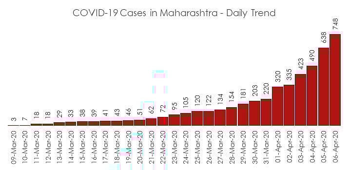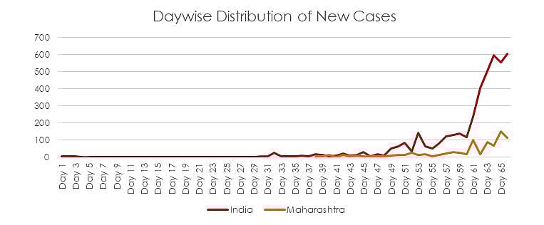 Maharashtra registered its first case on 9 March 2020, and has seen significant increase in the number of cases in the last week, with an average of 80+ new cases added on a daily basis.