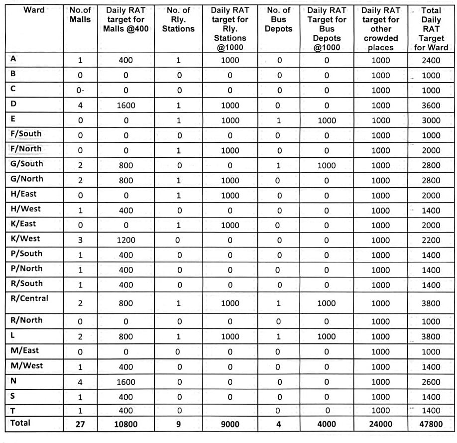 4. In addition to above crowded places, each ward shall carry out at least 1000 Kapid Antigen Tests, from other crowded places like, Restaurants (staff & customers), Khau Gullies, Hawkers, Market Places, Tourist Places, various Govt. Offices, beaches, etc.