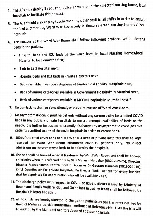 The Brihanmumbai Municipal Corporation (BMC) on Monday issued a list of guidelines for all government, municipal, and private hospitals and nursing homes having COVID-19 facilities.