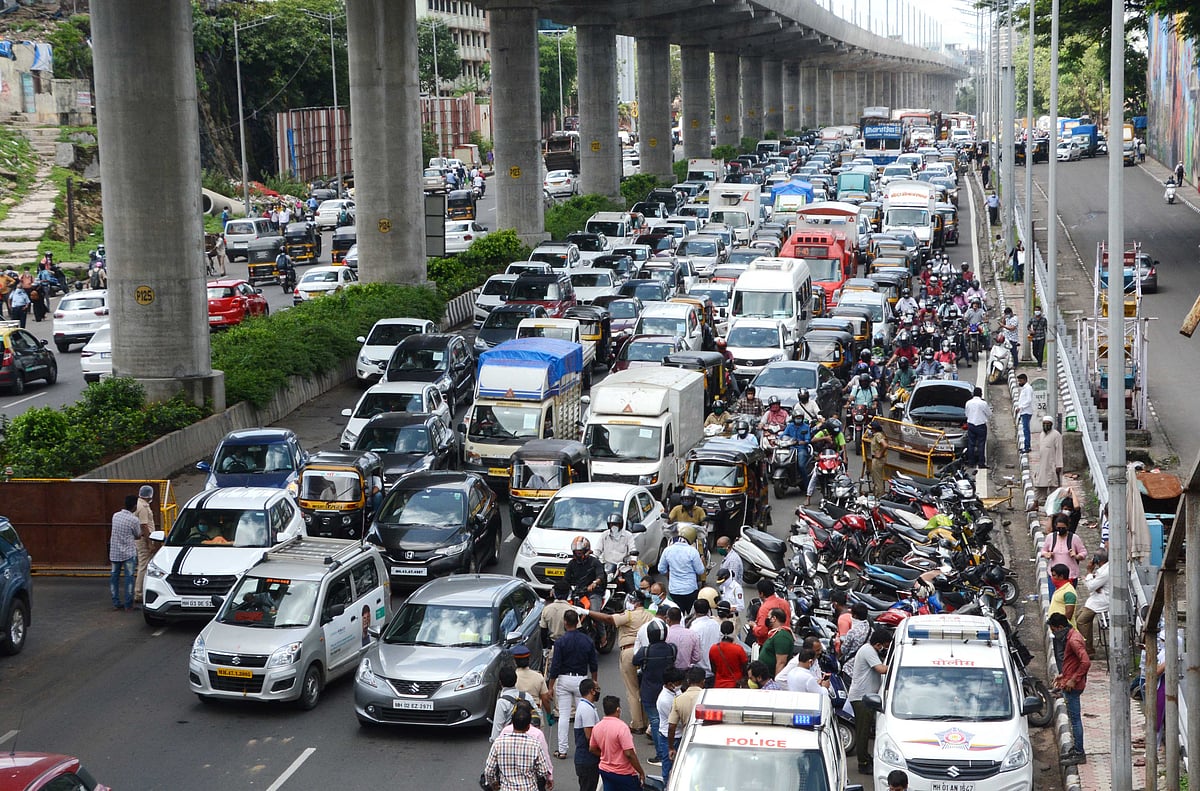 Mumbai: For the third consecutive day, massive traffic jams were witnessed on the Western Express Highway (WEH) and Eastern Express Highway (EEH) on Tuesday, as Mumbai Police enforced the '2 km radius rule'.