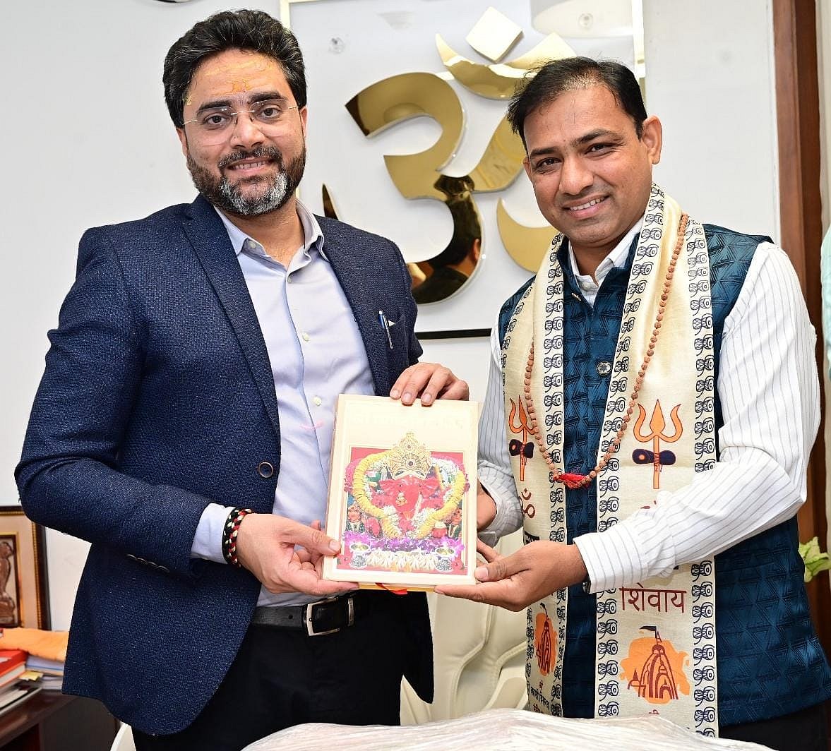 Sandeep Rathod, deputy executive Officer, Shri Siddhivinayak Ganapati Temple Trust, and Prashant Manerikar, senior priest, formally handed over the sacred gift to Kashi Vishwanath Temple Trust.