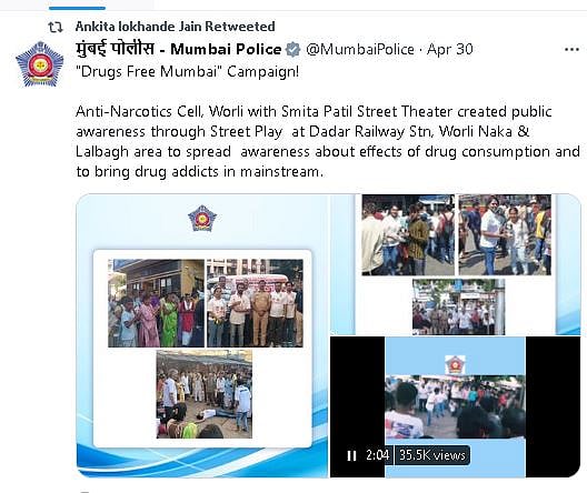 Tamannaah Bhatia retweeted the Mumbai Police tweet with a comment, "Great initiative Mumbai Police. More power to the 'Drugs Free Mumbai' campaign." Actress Ankita Lokhande also retweeted the campaign tweet.