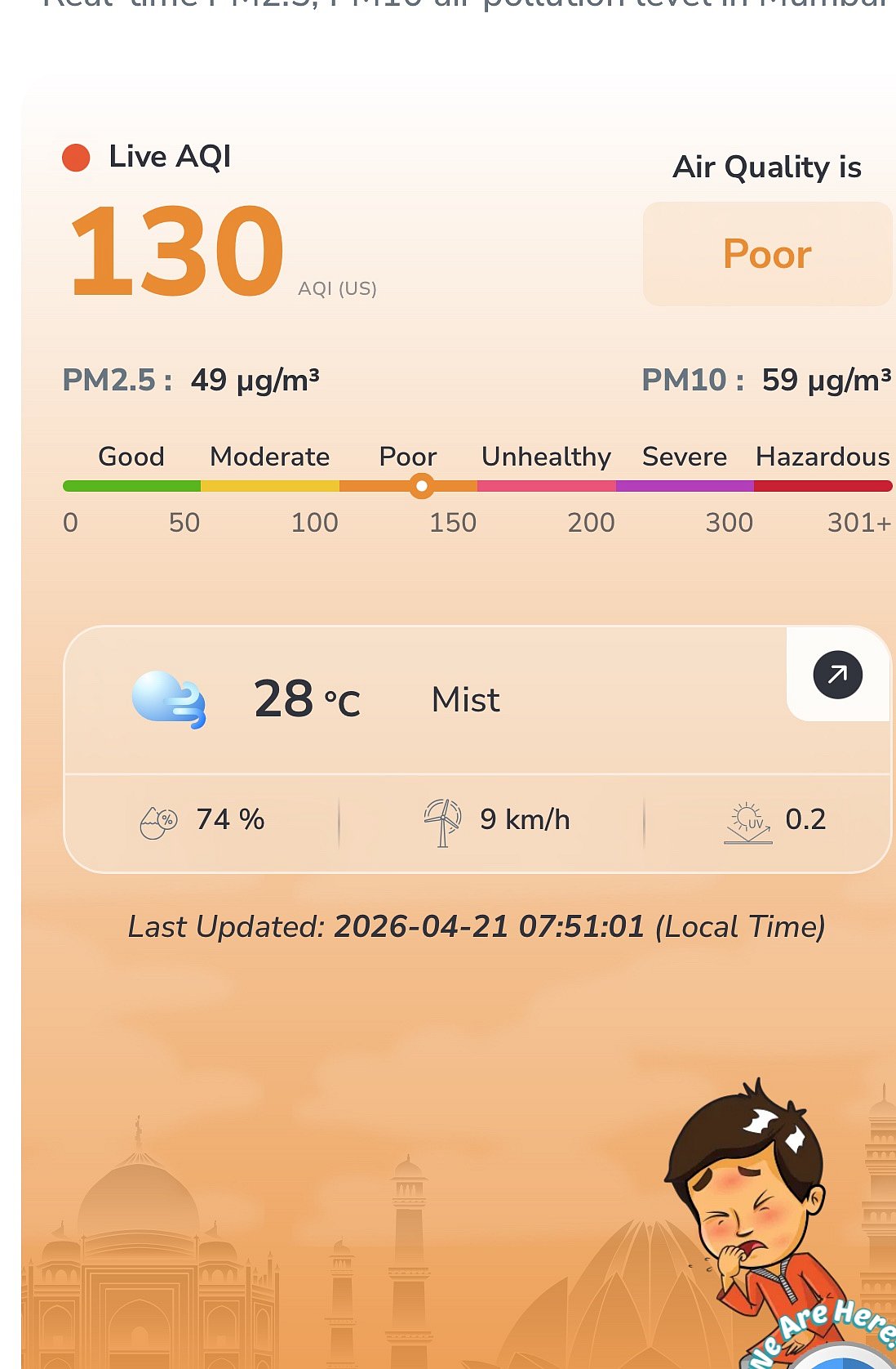 Adding to the discomfort, the city’s air quality has slipped into the poor category. The Air Quality Index currently stands at 130, with key pollutants such as PM2.5 and PM10 recorded at concerning levels.