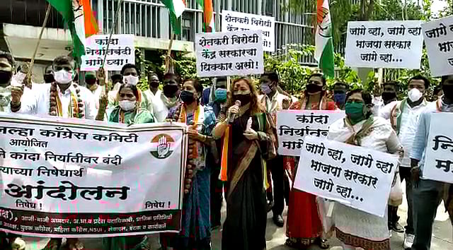 Mumbai: On a second day today the onion growers across the state protested against a ban on export. The ruling Congress party and Shiv Sena also organised a state wide agitation demanding immediate withdrawal of the ban in the larger interest of the onion growers who are hit hard due to lockdown and struggling to stay afloat.