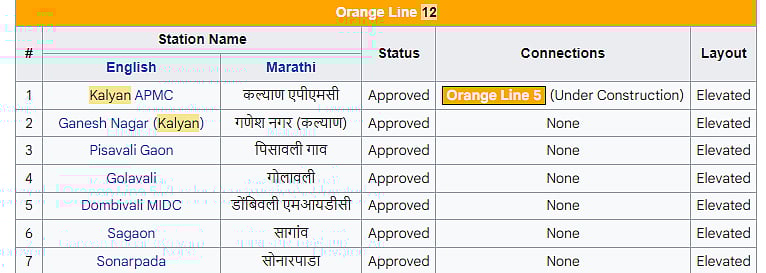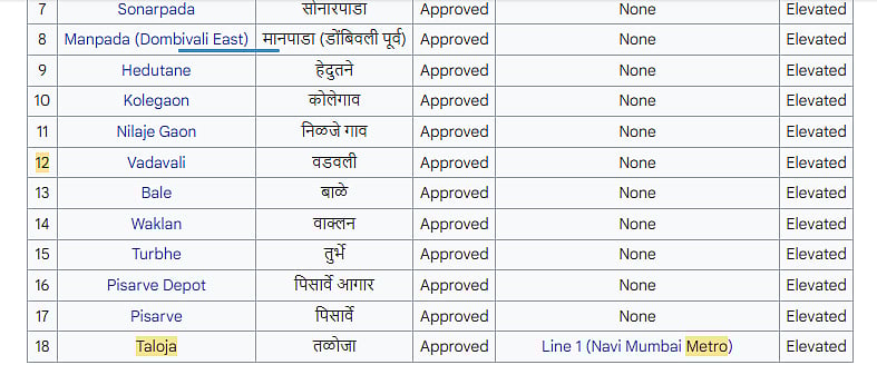 Below is the table of the stations approved by MMRDA for Metro-12