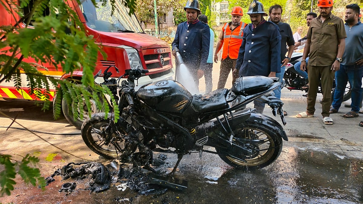 Thane: A Yamaha R15 motorcycle was completely gutted by fire on Monday afternoon near the Mental Hospital in the Dharmaveer Nagar area of Wagle Estate, Thane (West). Despite the total loss of the vehicle, no casualties or injuries were reported thanks to the quick reflexes of the riders.