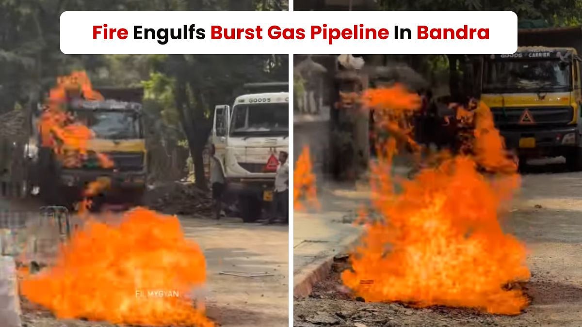 Mumbai: Panic gripped parts of Bandra after a gas pipeline burst triggered a fire on a road stretch, with visuals from the spot showing flames rising from a dug-up portion of the carriageway.