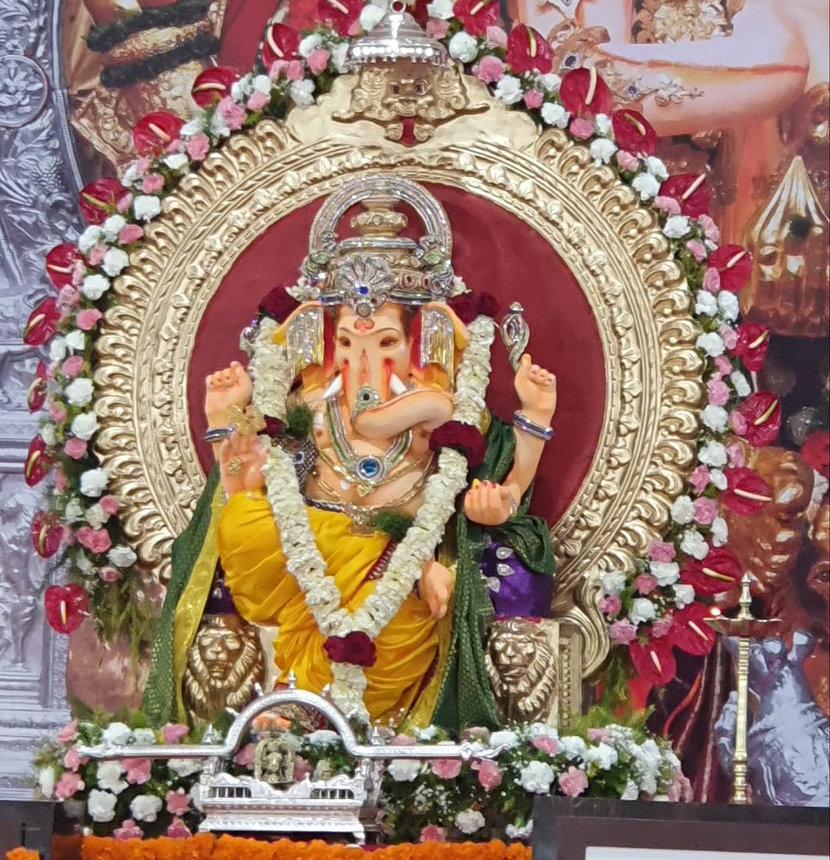 In normal circumstances, one would often see devotees from Mumbai, other parts of Maharashtra, and even from across India queue up to visit the pandal and offer their prayers and book their pujas to Lord Ganesha. People from the rest of the world, too, make it a point that they seek blessings of Lord Ganesha at the pandal.