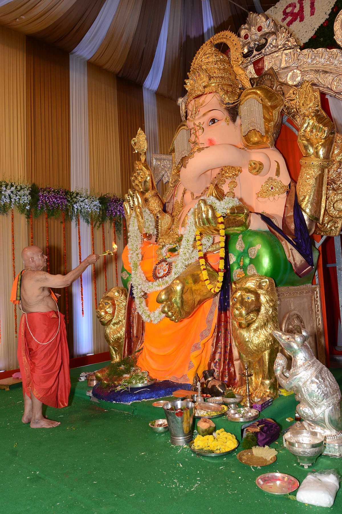 Now, no one is allowed inside the pandal and one can take darshan and offer prayers online.
