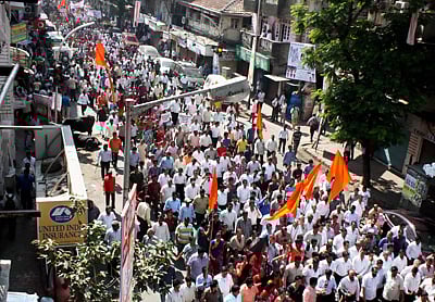 Local people took out a long march from Princes Street to Girgaum Church in the morning. The march was led by Pandurang Sakpal, Vibhag Pramukh of Shiv Sena.