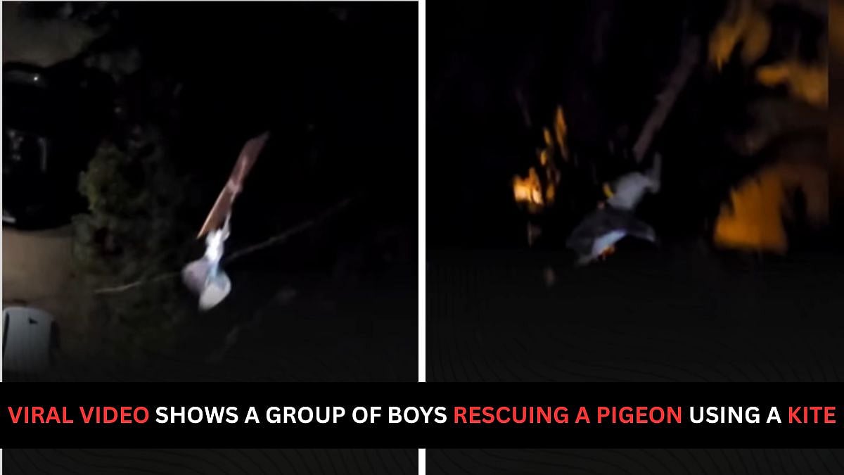 Visuals circulating online show the pigeon trapped in electric wires, while a kite is carefully manoeuvred close to it to gently free it from the entanglement. The kite string is brought close to the pigeon and is used to gently pull it along, gradually freeing the bird from the wires.
