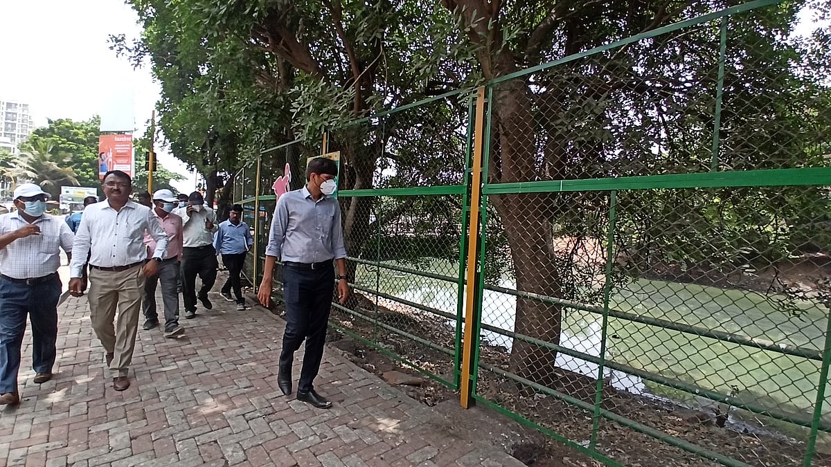 As flap gates are important for preventing flood-like situations during heavy rainfall, civic chief Bangar directed that all the flap gates must function properly. He also checked the flap gate for inflow and outflow of creek water along the holding pond in Sector 9 in Koparkhairane.