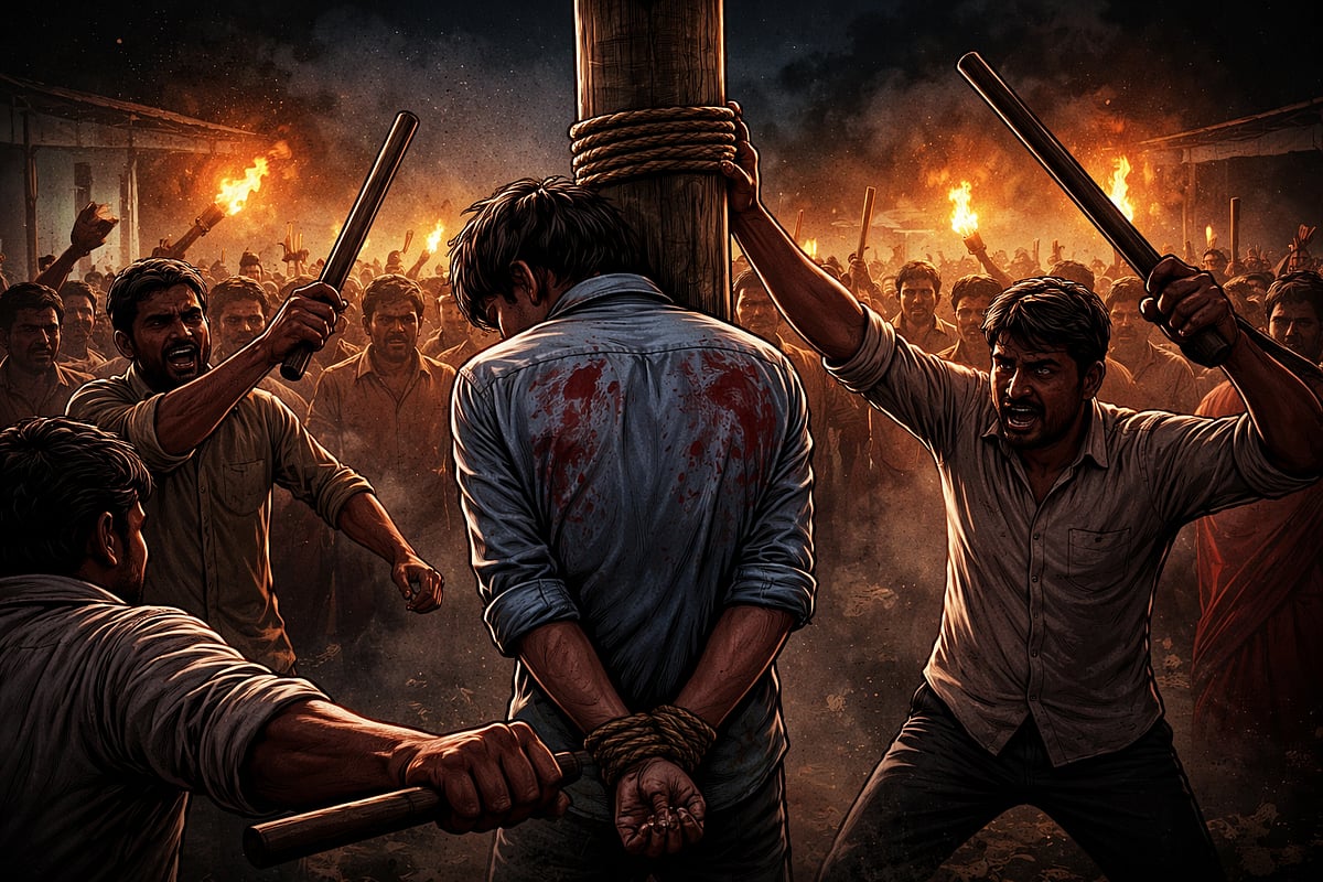 Jalgaon, March 23: In a disturbing case from Jalgaon district in Maharashtra, a 25 year old man was allegedly beaten, stripped, tied to a pole, and paraded naked in public after marrying a woman against her family’s wishes. The incident unfolded in broad daylight, leaving locals shocked and raising serious questions about mob violence and social acceptance.