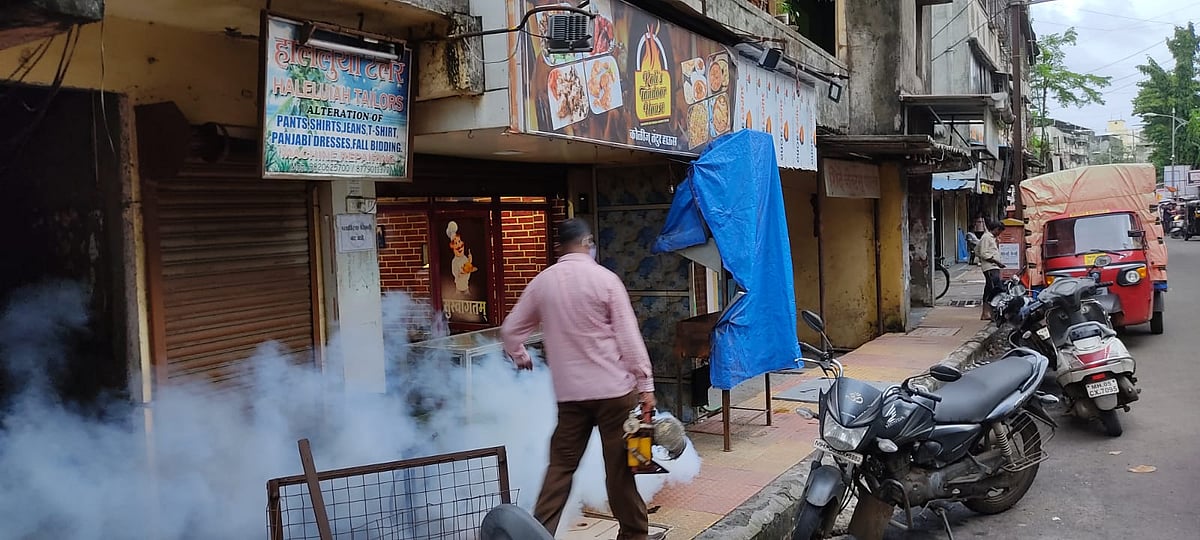 Sources from the KDMC said the ongoing heavy rainfall since July 21, has resulted in waterlogging in many low lying areas across the twin city. In the last two days, the rainfall stopped and water receded. The fear of water-borne diseases had gripped across the cities. Dr Vijay Suryavanshi, Municipal commissioner, KDMC had instructed the officials to spray disinfectant in society and slums which were waterlogged to prevent the spread of water-borne diseases. "Suryavanshi also instructed to clear the garbage, which is found at the waterlogging spots. The solid waste management department had started the cleaning process with sanitizing and disinfecting across the affected areas," said an official from KDMC.