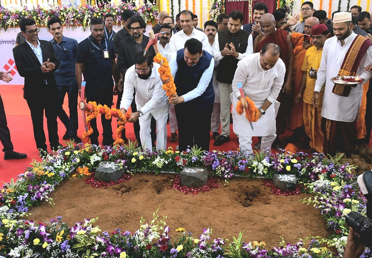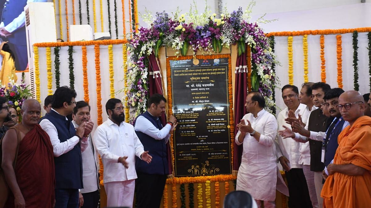 Mumbai: Chief minister Devendra Fadnavis and deputy chief ministers Eknath Shinde and Ajit Pawar performed ground-breaking ceremony (bhoomipujan) of the redevelopment of Mata Ramabai Ambedkar Nagar and Kamraj Nagar in Ghatkopar East on Tuesday afternoon.
