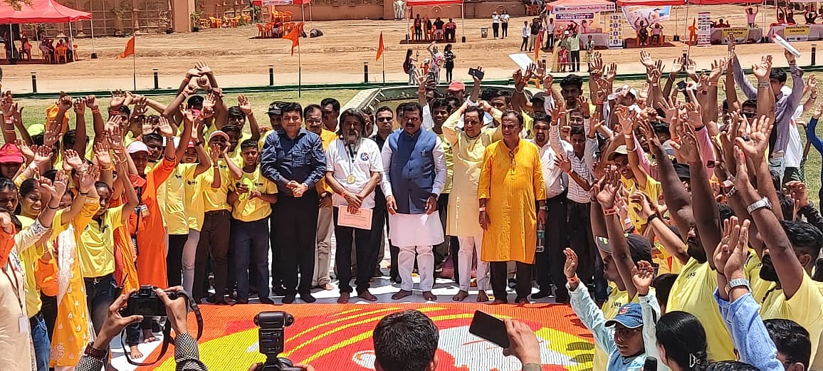 A total of 5023 students and artists created a mosaic depicting the image of Chhatrapati Shivaji Maharaj measuring 13x12 ft at ND Studios Karjat in Maharashtra.