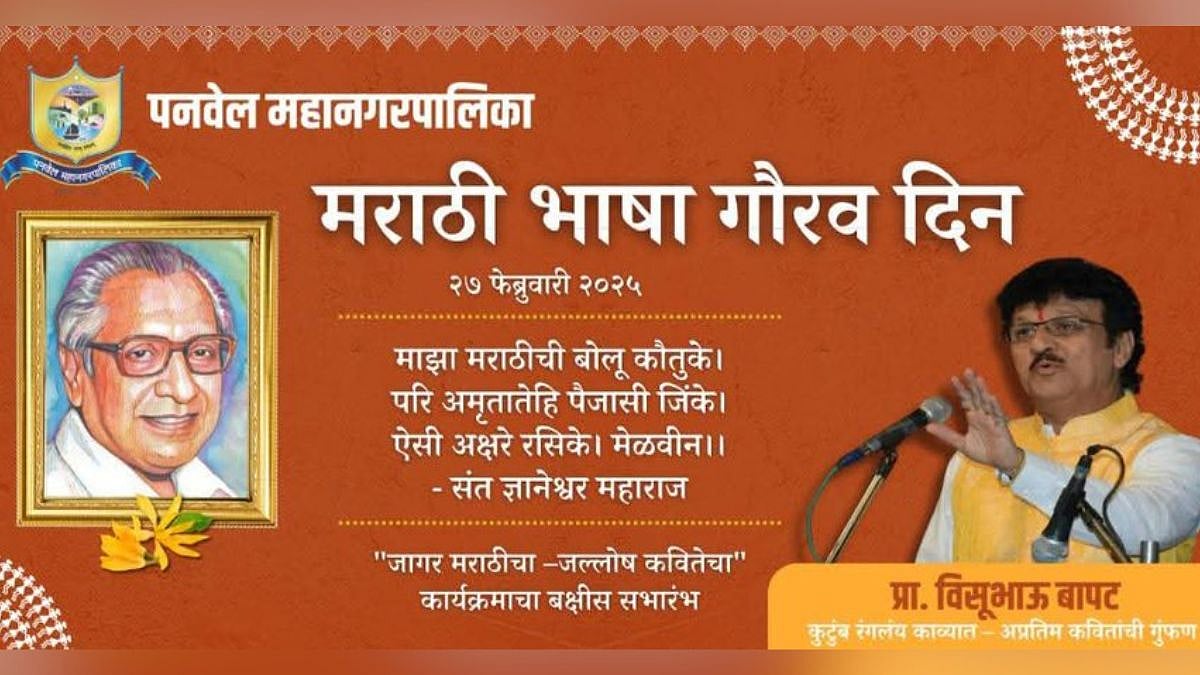 Navi Mumbai: On the occasion of Marathi Bhasha Gaurav Din, celebrated annually to mark the birth anniversary of Jnanpith award-winning Marathi poet and playwright Kusumagraj, the Panvel Municipal Corporation has organized a special poetry event titled "Kutumb Ranglay Kavyat" by renowned poet and performer Prof. Visubhau Bapat.