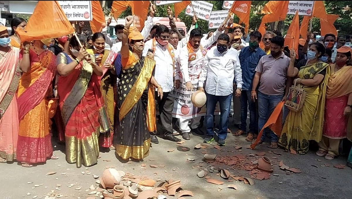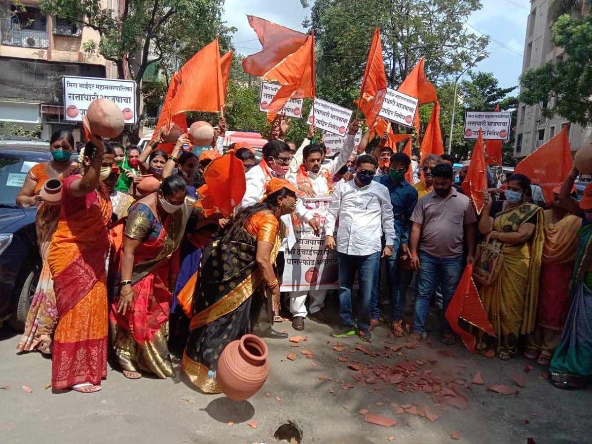 Blaming the administration and the ruling BJP for mismanagement of water supply in the twin-city, the Shiv Sena staged an agitation by shouting anti BJP slogans and breaking empty earthen pots at MBMC’s community hall building in Bhayandar (west) on Monday. On the other hand the BJP which single-handedly ruled the civic body has threatened to launch a massive agitation on 21, October against the Sena-led Maha Vikas Aghadi (MVA) government accusing their ministers of meting out step motherly treatment to the twin-city.