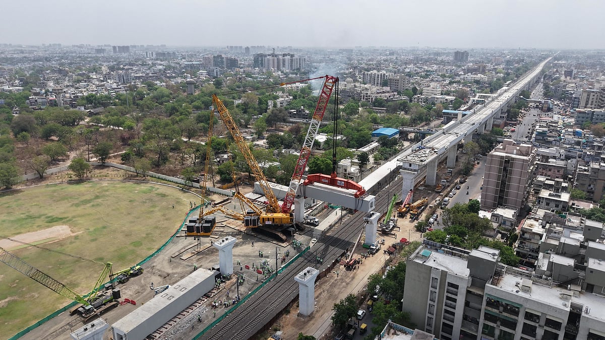In a remarkable engineering feat, one of the heaviest precast prestressed portal beams in India has been successfully launched over active railway tracks for the Mumbai Ahmedabad Bullet Train project. The operation was carried out near Maninagar railway station on the Amdavad Vadodara section.