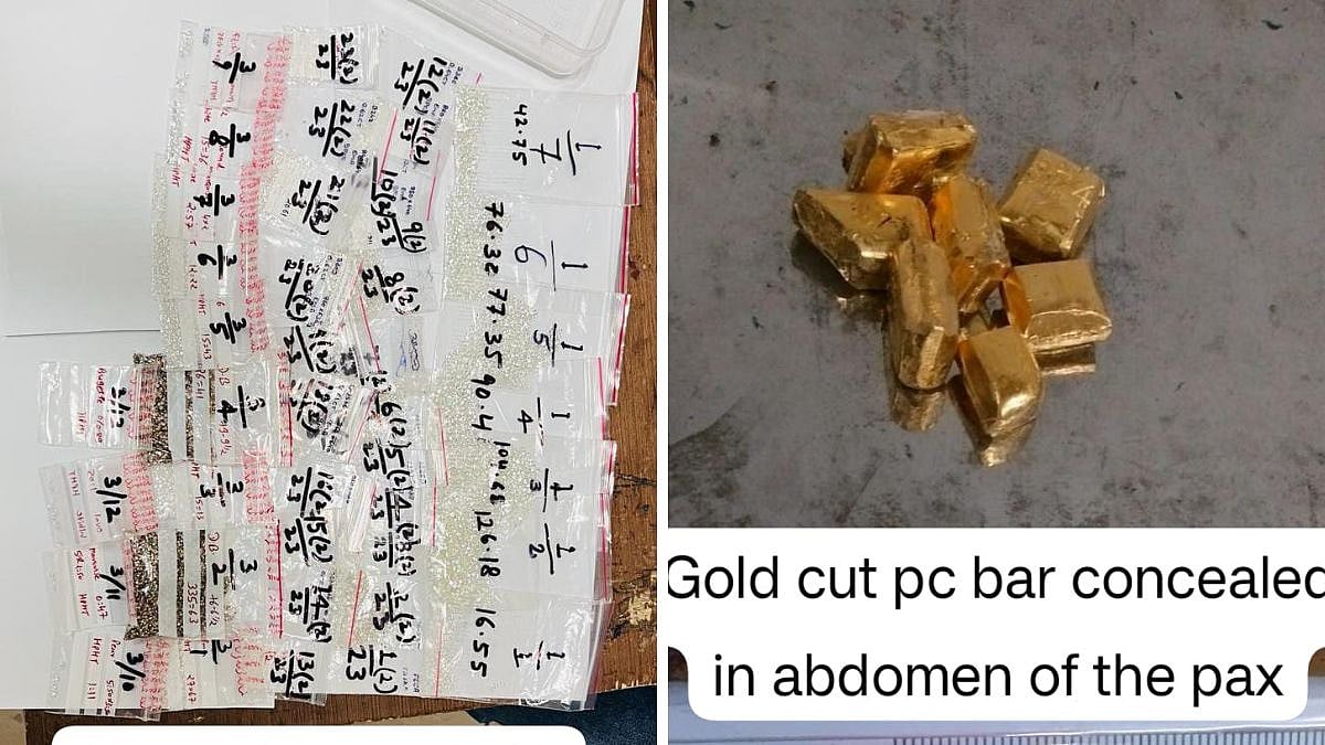 He added, "Based on suspicion, the hand bag of another passenger on the same flight was examined which resulted in recovery of three pouches wrapped in black colour adhesive tape, concealed in the pocket of one of the trousers kept therein. These three pouches contained natural/lab grown diamonds totally valued at Rs.3.75 crore. The three passengers have been arrested. Further investigations are in progress."