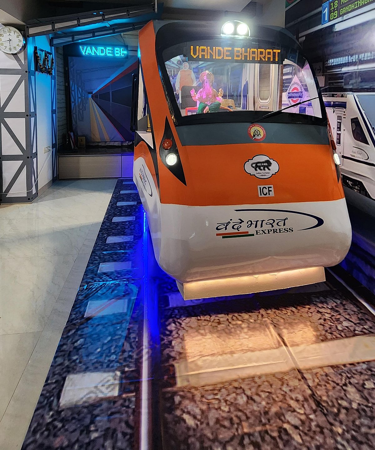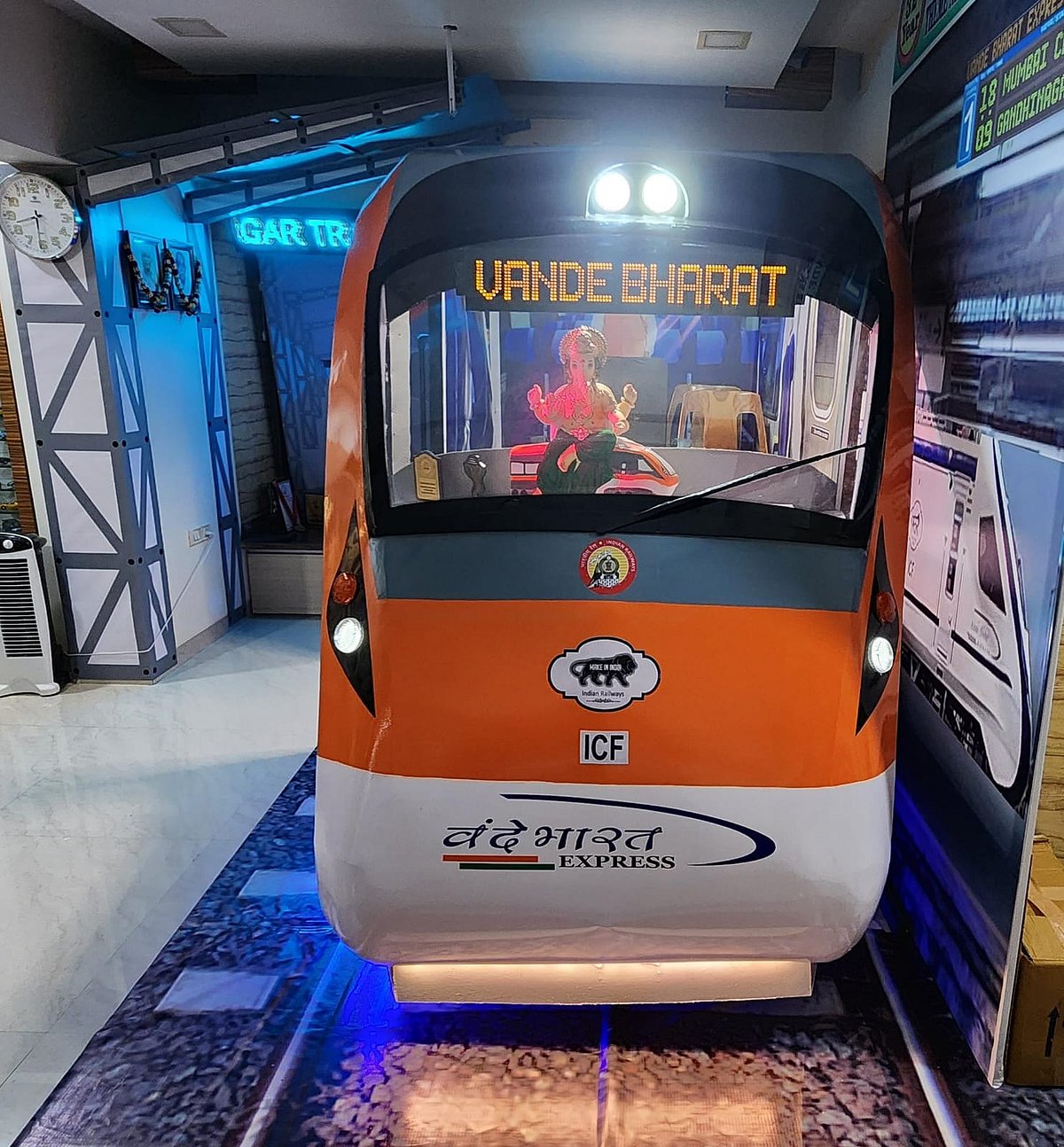 “I always take a theme that is pride of India. This time I decided to have one on Vande Bharat Express as another set of trains is likely to be inaugurated soon. I even asked the idol maker to make Vande Bharat Express in saffron, which will be the colour of the new ones with Bappa sitting on it,” said Makwana, who decided his theme nearly six months ago.