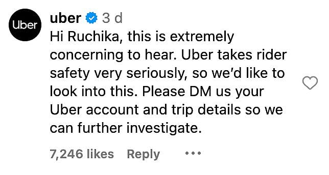 Following the incident, she approached the Rapido help desk. While the staff were polite and tried to assist her, she had to book an Uber to continue her journey to Noida.