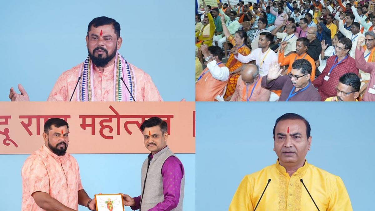 On the concluding day, Bharatiya Janata Party MLA from Telangana’s Goshamal T Raja Singh Lodh tagged Hindu politicians, who turn secular after winning elections, as useless for establishing Hindu Rashtra. He asked people to elect 50 staunch Hindu member of parliaments to demand a Hindu Rashtra in the Lok Sabha.