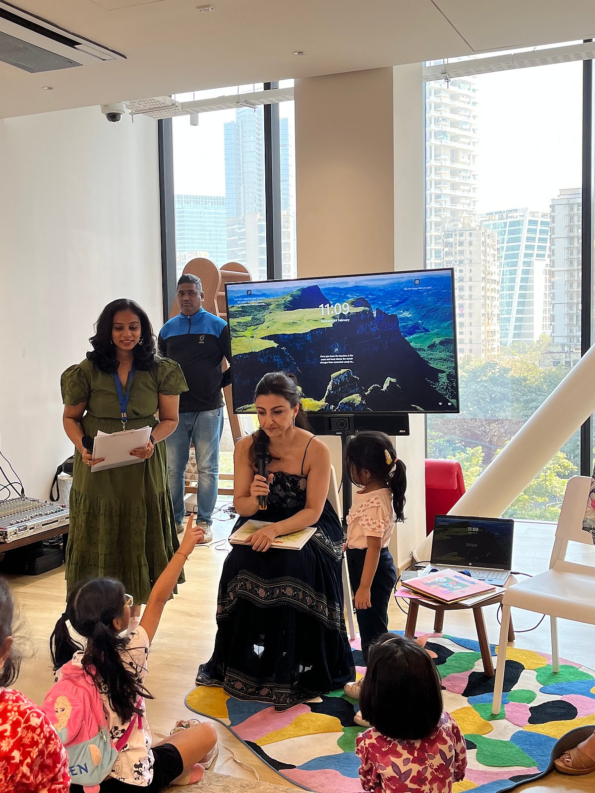 Bollywood Actor Soha Ali Khan also participated in the literature festival and read stories to the children at the Museum of Solutions. She read her book Inni and Bobo to more than 25 young children from the city in the library at the museum.