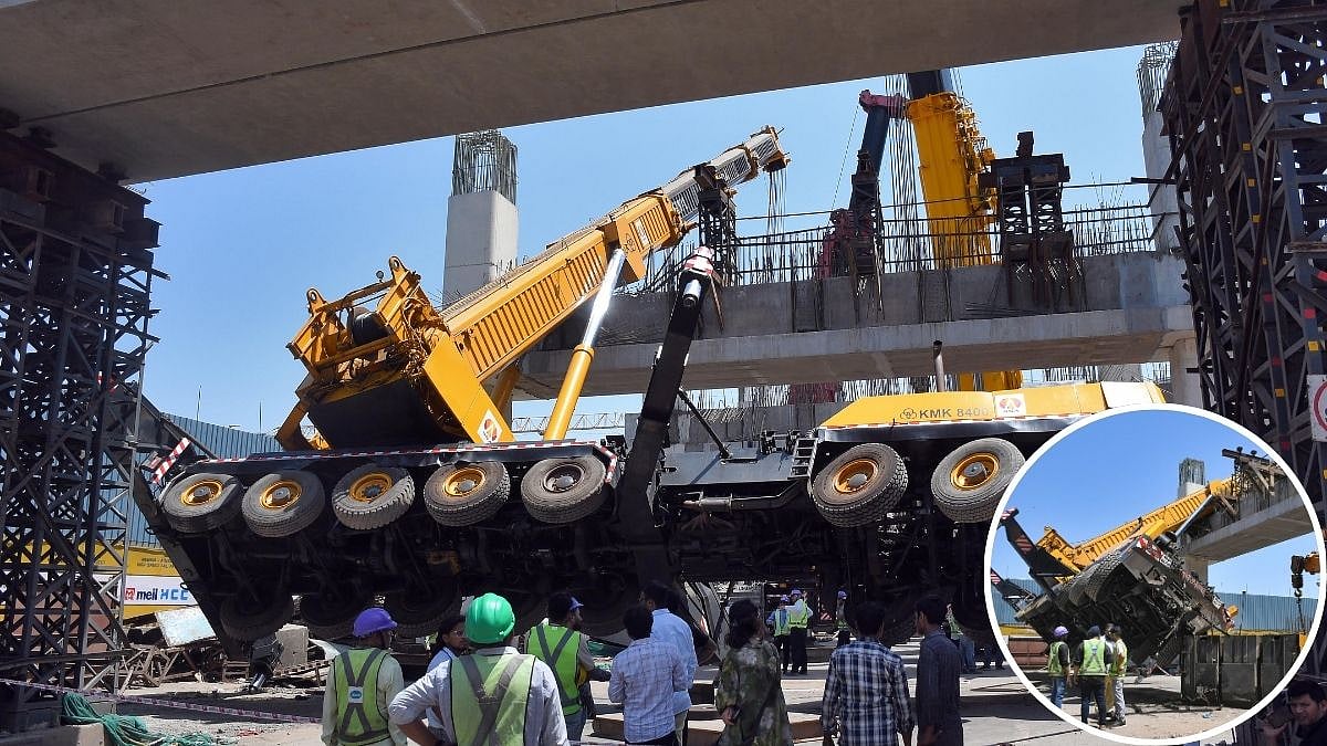 Authorities said the crane, which was handling a precast beam weighing 140 metric tonnes, got suspended mid-air after its lifting gear malfunctioned during operations and the load shifted to another crane.